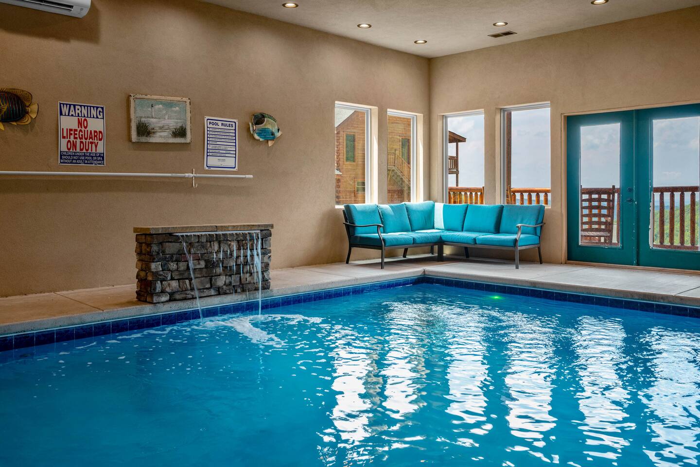 🤩 Guests have the entire cabin to themselves, including the private indoor heated pool, hot tub, and balconies!